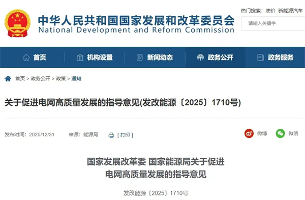 近日,为适应能源绿色低碳转型需要,支撑新能源大规模高比例发展,保障大电网运行安全和电力可靠供应,服务建设全国统一电力市场,满足人民群众高质量用电需求,国家发展改革委、国家能源局就促进电网高质量发展提出《关于促进电网高质量发展的指导意见》发改能源〔2025〕1710号。